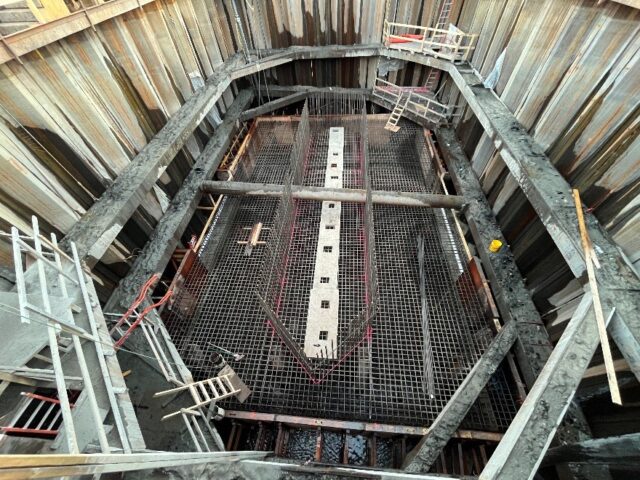 During the two shifts, teams will use a crane with a clam shell bucket to scoop sand and soil out of the cofferdam, which is the area where the pier will be constructed. Night time operations will follow noise mitigation measures such as reducing equipment operated, as well as directing lights required toward the limited work area.